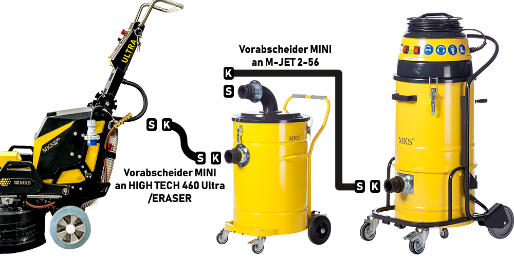 Die Easy Connect Schlauchkupplungen mit Schnellverschluss sorgen für den perfekten und dauerhaft sicheren Anschluss vom Saugschlauch an die MKS M-Jet Sauger, Vorabscheider und MKS HIGH TECH Schleifmaschinen und sind für alle gängigen Schlauchdurchmesser verfügbar.