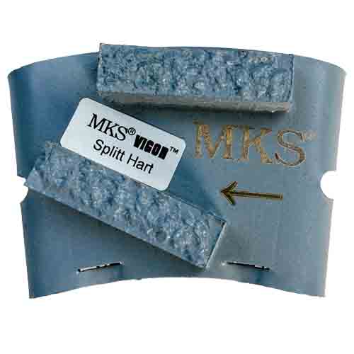 Die Werkzeuge VIGOR PKD Splitt Standard verfügen über 10 mm breite Segmente und einen „wild“ eingemischten Mix aus PKD-Splittern bestimmter Größen. Durch ihre Blockform bleiben sie sehr stabil und robust, falls sich im Boden Widerstände wie Bolzen, Dübelhülsen oder ähnliche Hindernisse befinden.